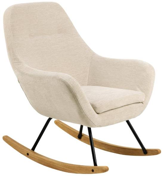 Seat and have a relaxing mood with this rocking chair from the Matti collection, it is shown in a Skyland fabric cream 1 cover and metal matt black powder coated and rubberwood oak stained nitrocellulose lacquered base. Make a statement by incorporating this chair into your living room design.Read More