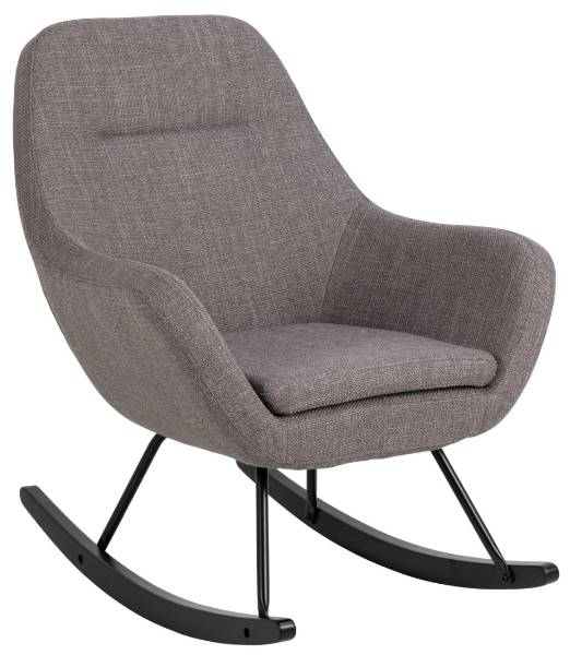 Seat and have a relaxing mood with this rocking chair from the Matti collection, it is shown in a Basel fabric light grey-brown 34 cover and metal matt black powder coated and rubberwood oak stained nitrocellulose lacquered base. Make a statement by incorporating this chair into your living room design.Read More