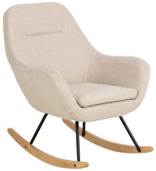 Seat and have a relaxing mood with this rocking chair from the Matti collection, it is shown in a Basel fabric beige 24 cover and metal matt black powder coated and rubberwood oak stained nitrocellulose lacquered base. Make a statement by incorporating this chair into your living room design.Read More