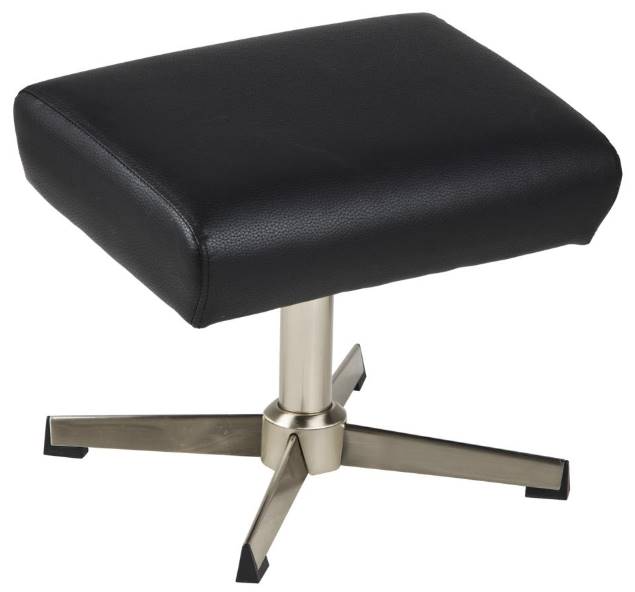 Seat and relax by including this footstool from the Porto collection, it is shown in a Dollaro PU black A20 cover and steel chrome brushed base. Make a statement by incorporating this stool into your living room design.Read More
