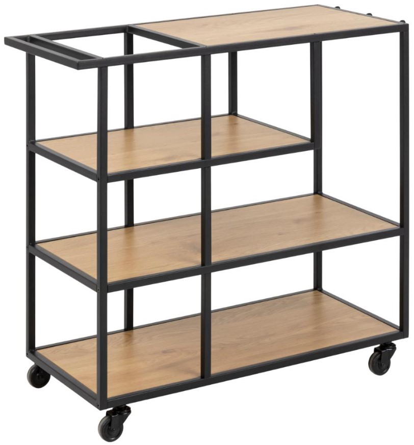 This Actona Seaford serving trolley provides a functional addition to your home décor. This serving trolley is shown in matt black and matt wild oak finish. Incorporate this trolley into your kitchen or dining room to update your space.Read More