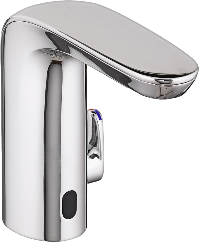 This NextGen Selectronic Commercial Faucet from American Standard also includes an above-deck mixing handle, allowing the user to adjust the water temperature to their liking. This faucet has a sleek, clean design that brings elevated style to the bathroom. The integrated electronics locates the sensor, battery and solenoid valve in the faucet spout and eliminates the need for a control box.