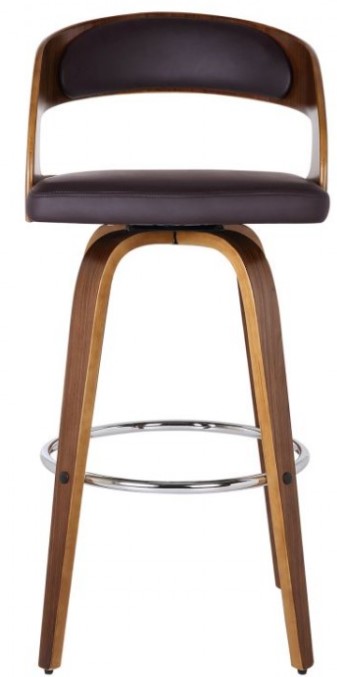 Add mid-century modern design to your home with this Shelly swivel barstool. It is elegantly designed with a sturdy 360 degree footrest in carefully crafted in top-quality Walnut wood finish, but also expertly upholstered with Brown Faux Leather and padded Walnut Back for comfort.Read More