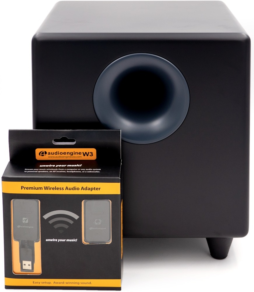 Includes: Audioengine S8 8” Powered Subwoofer and Audioengine W3 Wireless Adapter