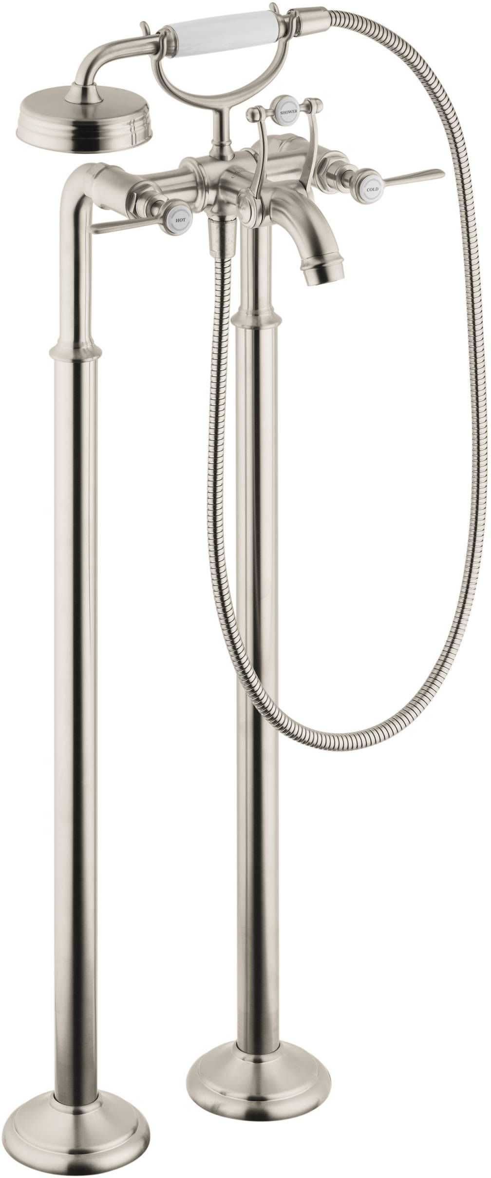 Consists of: 2-Handle freestanding tub filler trim, Handshower, Handshower hose