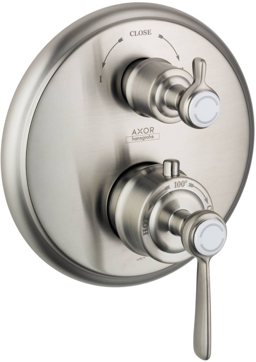 Brushed Nickel finished thermostatic trim with anti-scald 100° safety stop.Read More