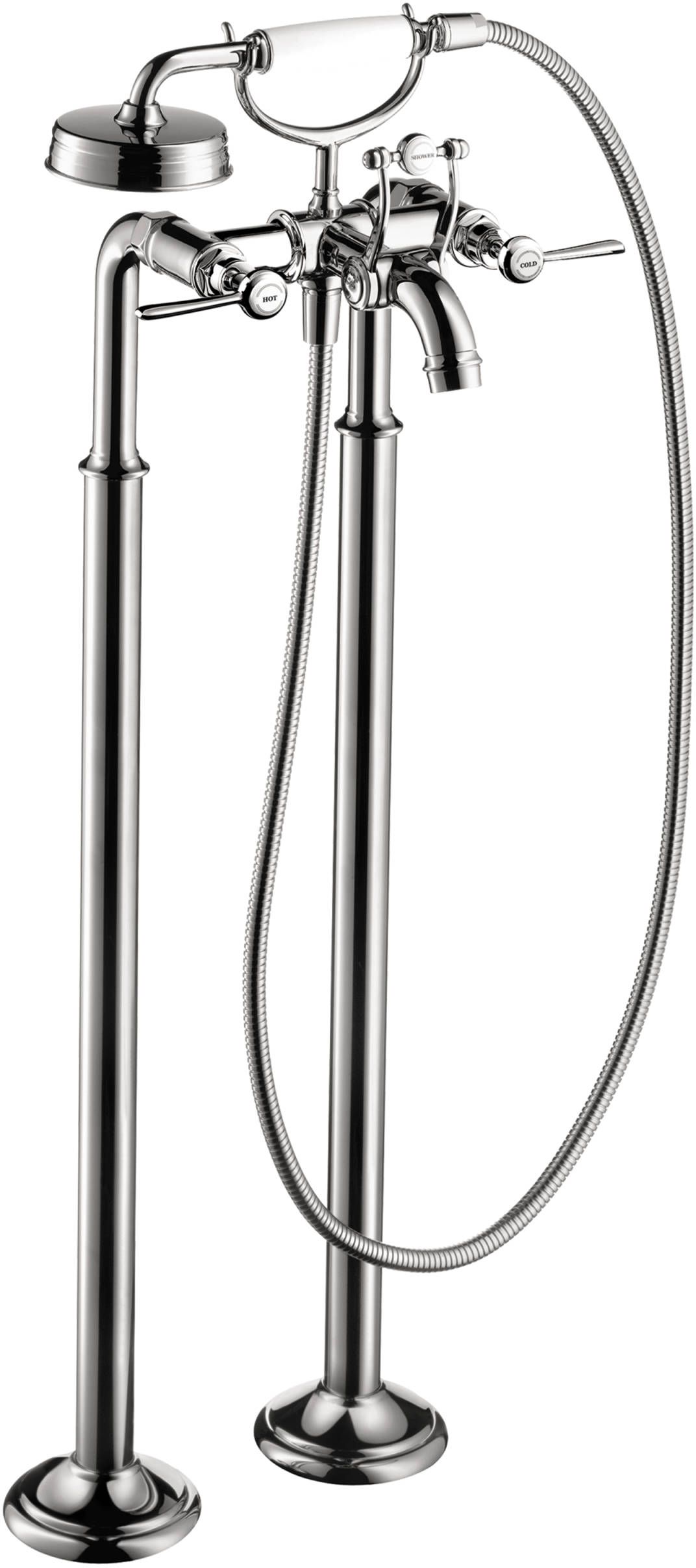 Consists of: 2-Handle freestanding tub filler trim, Handshower, Handshower hose