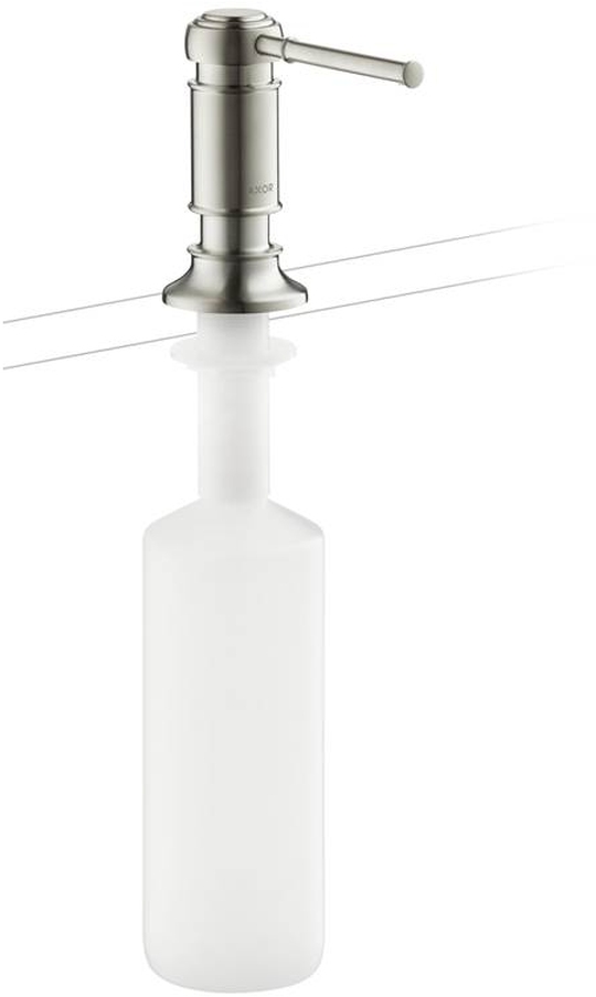 We are proud to present this steel optic finished soap dispenser, by Axor. The 42018801 is made from premium materials, this Soap Dispenser offers great function and value for your home. This fixture is part of Axor's decorative Montreux Collection, so make sure to check out other styles of fixtures to accessorize your room.