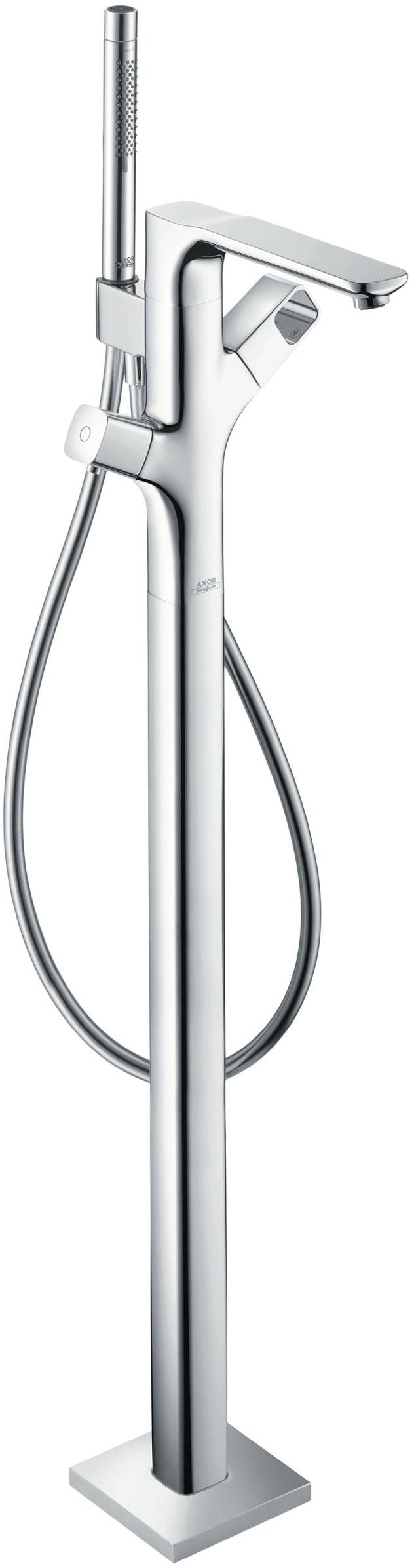 Consists of: Thermostatic freestanding tub filler trim, Handshower, Handshower hose
