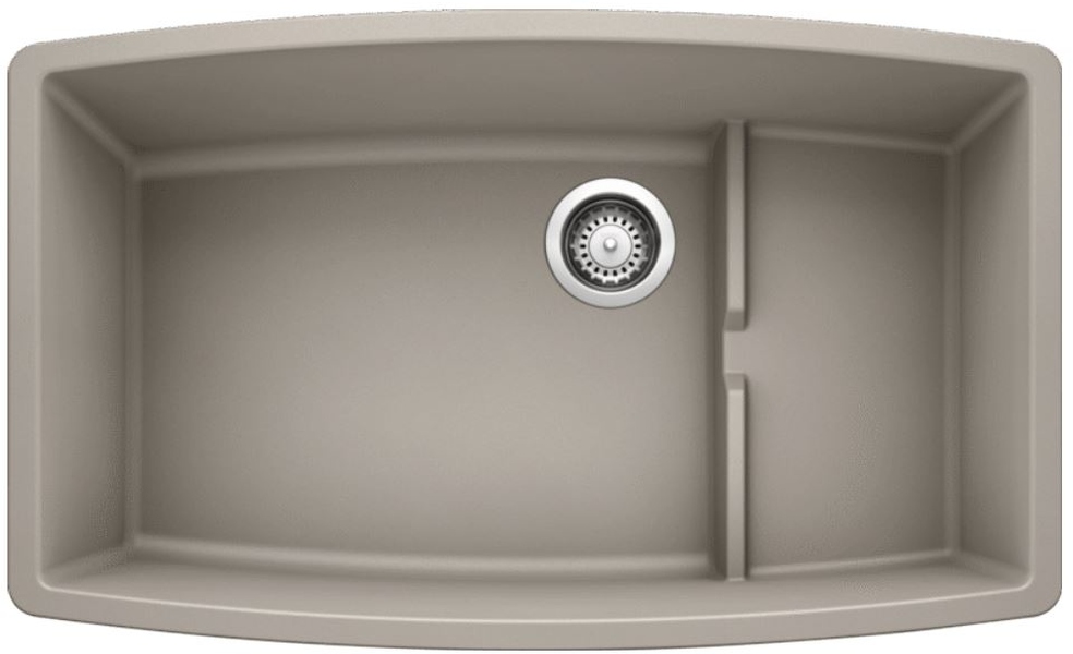 The Blanco® Performa Cascade Concrete Gray Super Single Bowl Kitchen Sink features a raised ledge for placement of colander to rinse fruits, vegetables and utensils. Functional drain grooves remove excess water into main sink.Read More