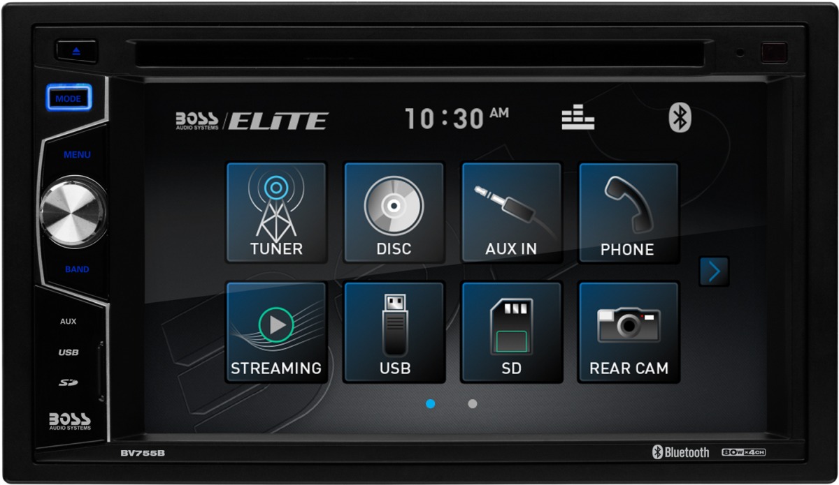 Plays Bluetooth/DVD/CD/USB/SD, VCD, MP3, JPEG, WMA, FM/AM, Digital Media from Smart Phones