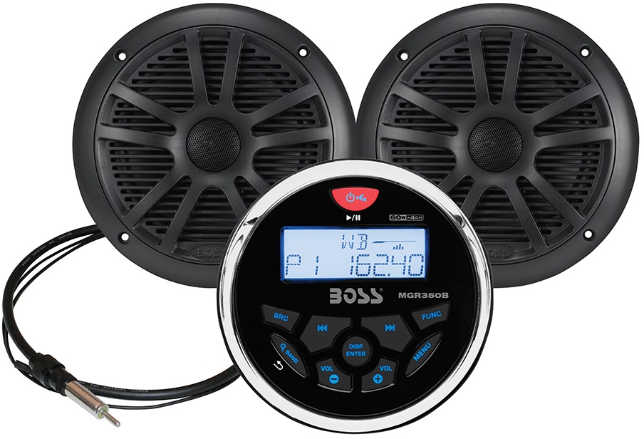 Package includes MGR350B in dash marine gauge digital media AM/FM receiver, one pair of 6.5 inch marine MR6B speakers and MRANT10 marine antenna.Read More