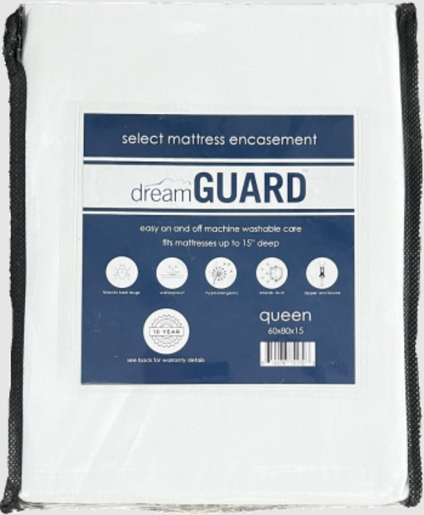 The dreamGUARD™ Encasement Mattress Protector keeps your mattress clean and fresh. It fits mattresses up to 15" deep with a secure zipper. Made from waterproof fabric, it stays quiet and comfortable. Easy to use and machine washable for simple care.Read More