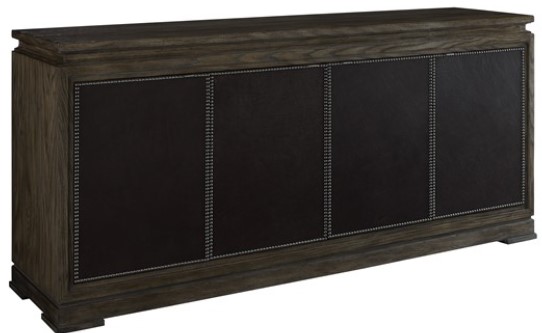 Here, on the GC0755L Guy Chaddock has wrapped the doors of the Lakota console in rustic leather. What would you do? If your look is not rustic chic, no worries. Select from all Chaddock fabrics, leathers, vinyls and even COM. Lakota interior offers universal functionality, ready for all your modern media needs. Six adjustable shelves, two in center and two on each end. Your choice of Polished Nickel or Antique Brass Tab Pulls. Nailhead is standard and if using Leather on the door fronts nailhead is required. Available in Maple or Oak and customization is possible.Read More