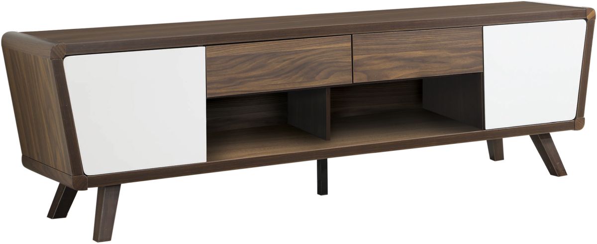 TV console finished in walnut with door fronts finished in glossy white