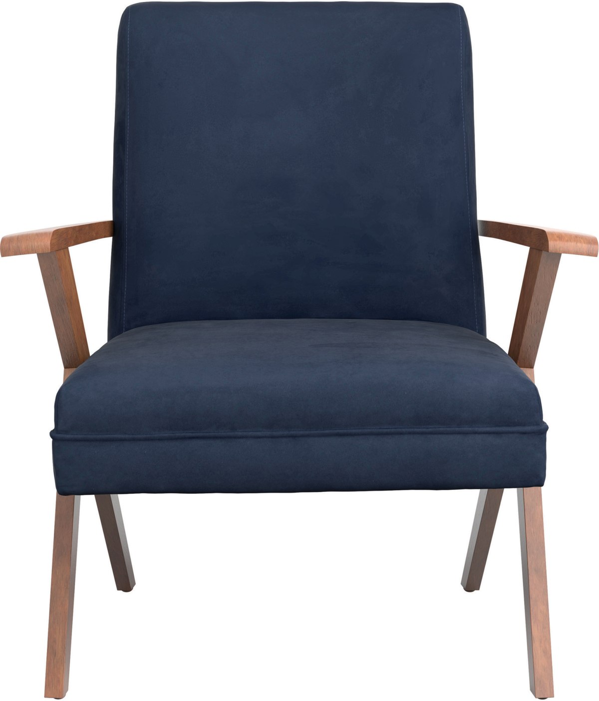 Go bold in both tones and silhouette when you add this fabric accent chair to your home. Chair is upholstered in soft dark blue fabric.Read More