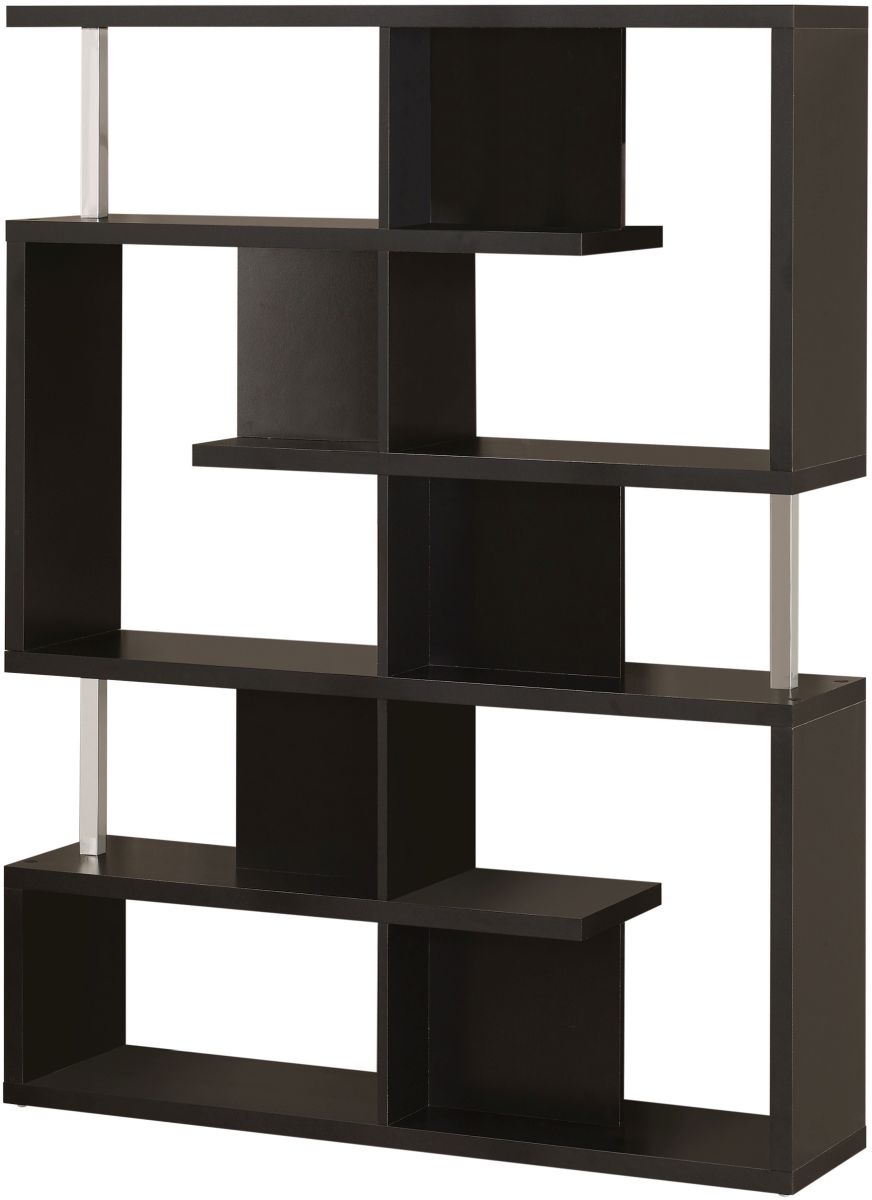 Choose a black finish for a more subdued look, or white for a kick of contemporary cool. Chrome details liven up its artful design. With its modern silhouette, this bold bookcase is sure to be a conversation piece.