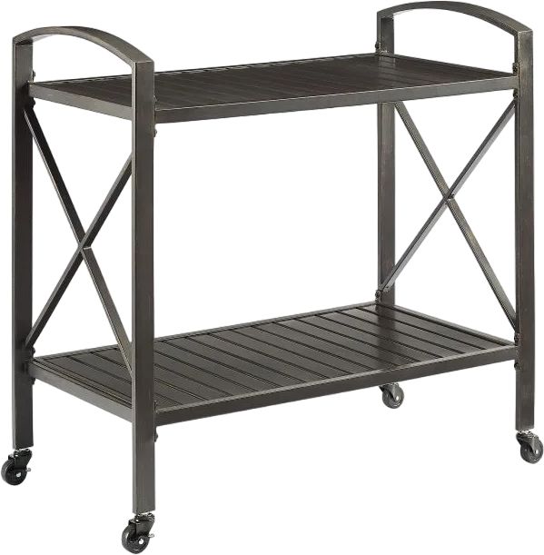 Crafted from all-weather powder-coated steel, the Kaplan Outdoor Bar Cart makes outdoor entertaining a breeze. Two sturdy slatted shelves provide space for drinks, dishware, and food, while four caster wheels allow you to bring the party wherever you please. With a classic X design on the sides and a sleek silhouette.Read More