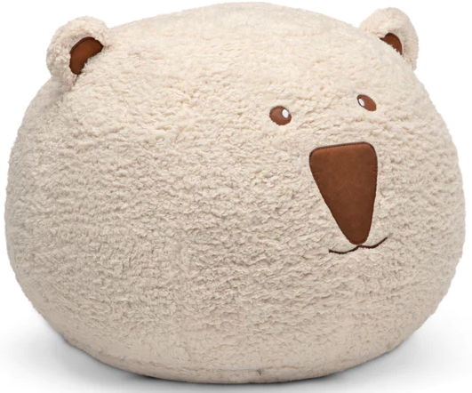 This cute and cuddly pouf with a bear face features embroidered details that makes it a playful option for your little one