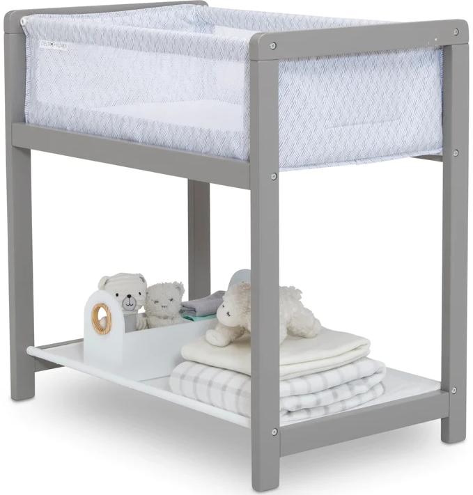 Enjoy peaceful moments from naptime to nighttime with the Classic Wood Bedside Bassinet Sleeper by Delta Children. It features a solid wood frame and gender-neutral pattern that complements any décor. A safe and comfortable place to sleep anywhere in your home, this bassinet is lightweight enough to be easily moved from room to room. Mesh sides allow generous airflow and a large storage shelf keeps necessities within reach. This bassinet is recommended for babies 0-5 months. Max weight 30 lbs. Stop use at 5 months or once your infant begins to push up on their hands and knees, whichever comes first.Read More