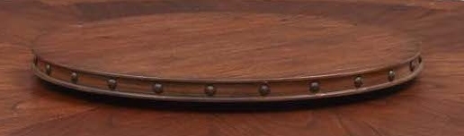 The Aspen Collection is made of solid mahogany with a dark brown finish that is a warmer tone that also features bronze accents. The edge of the table top is finish with nail head trim.
