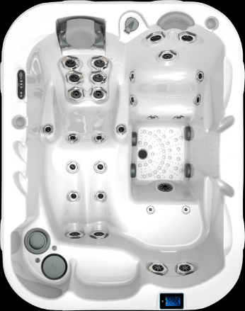 The Triad™ is the perfect hot tub for those who demand high performance in a compact package. Immerse yourself in total head-to-toe therapy in the UltraLounge™ featuring a patented Flex Therapy Pillow™ for a neck and shoulder massage. Or sit and soak in two seats with powerful accent jets that will soothe away aches and pains.