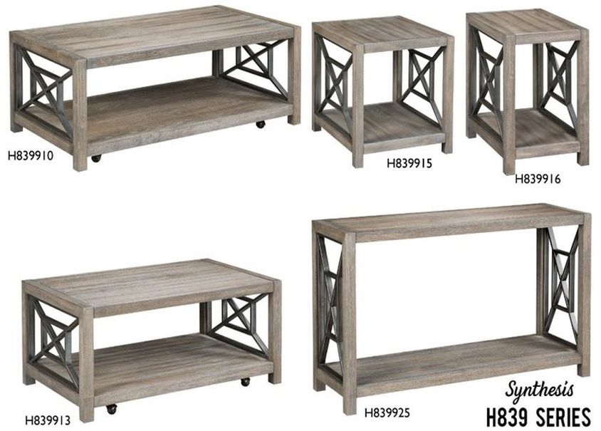 The Synthesis collection includes a small cocktail table, large cocktail table, end table, chairside table, and sofa table.Read More