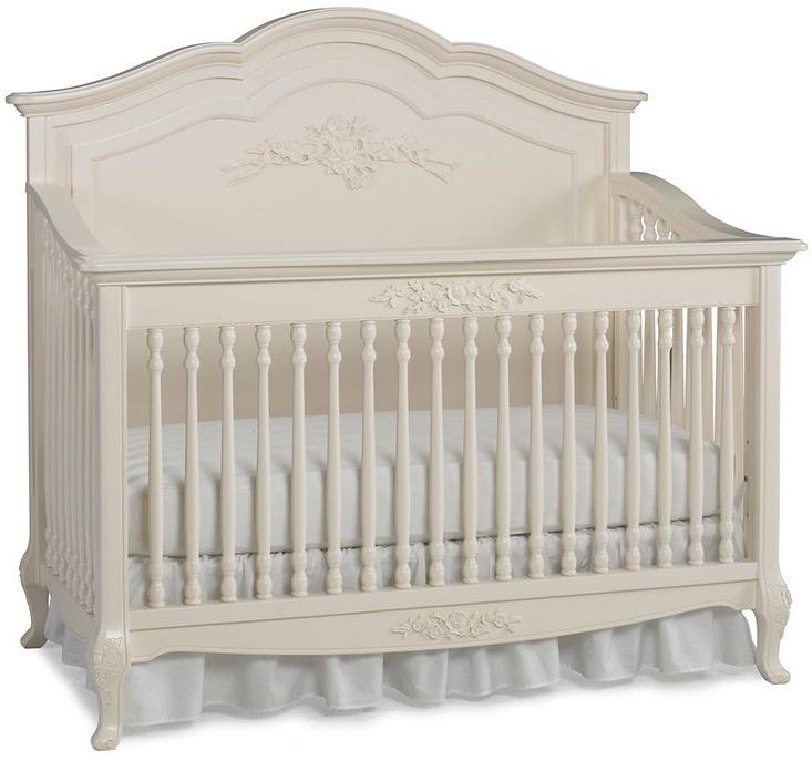 The full-panel crib is sweet and sophisticated with beautiful hand sculpted floral appliqués, graceful cabriole legs and generous curved moldings. This versatile crib transitions easily with each stage of growth; from crib to toddler and day bed, and finally, a full-size bed. Optional guardrail for toddler bed and Bed Rail Conversion Kit available and sold separately.