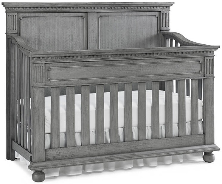 The Naples Full-panel Convertible Crib features traditional elements like dentil molding and fluting on a solid panel headboard to create a nursery that is both timeless and modern. Bun feet add a lovely contrasting accent to the crib as well as each coordinating piece. This collection is comfortable and classic. This versatile crib transitions easily with each stage of growth; from crib to toddler and day bed, and finally, a full-size bed. Optional guardrail for toddler bed conversion and Bed Rail Conversion Kit available and sold separately.