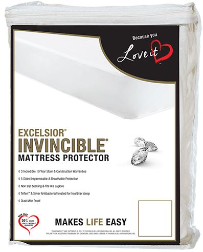 The Invincible Mattress Protector features a stretch knit impermeable fabric with a non-slip backing that fits snugly to your mattress, and provides protection for the 5 exposed sides of your mattress. It also features: