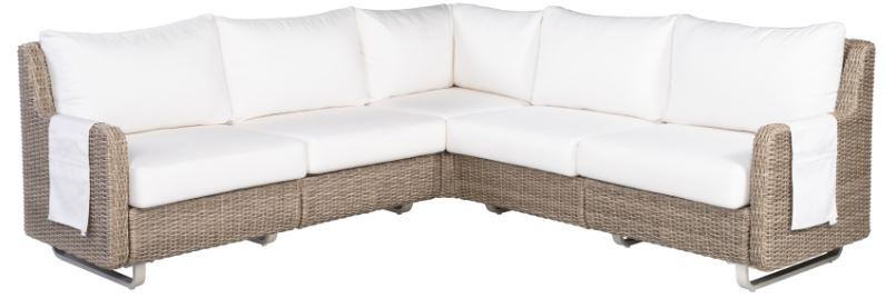 Transform your outdoor space into a luxurious lounging space with the soft curves of the Vista 5-seat outdoor sectional. This plush and generously scaled modular sectional exudes comfort, while the warm gray wicker, aluminum swivel base and natural-colored Sunbrella performance fabric upholstery provide weather-resistance for year-long enjoyment.Read More