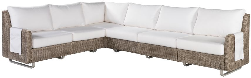 Transform your outdoor space into a luxurious lounging space with the soft curves of the Vista 6-seat outdoor sectional. This plush and generously scaled modular sectional exudes comfort, while the warm gray wicker, aluminum swivel base and natural-colored Sunbrella performance fabric upholstery provide weather-resistance for year-long enjoyment.Read More