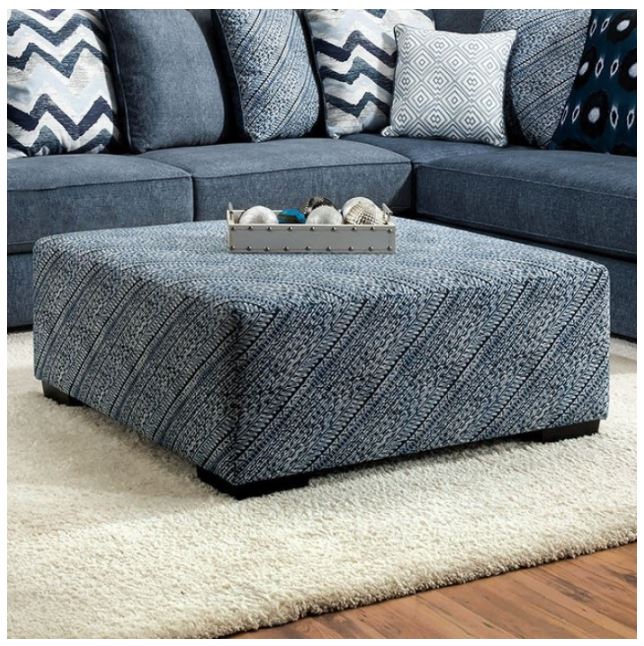 Everyone rests comfortably with this Brielle collection ottoman at home. The uniquely designed pattern covers bring amazing detail to any living area room. Made of solid wood and shown in a blue pattern color finish.Read More