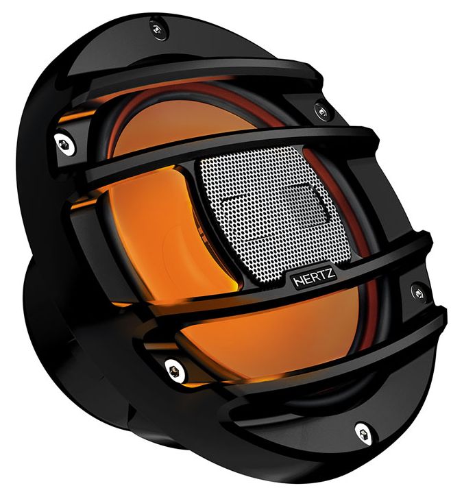 The HMX tweeters feature an acoustic lens optimized for best off-axis dispersion and maximized SPL. The attractive stainless steel tweeter mesh grille provides perfect high-frequency transfer and a rock-solid protection. The RGB LED lighting circuit is integrated below the tweeter, protected by a Polypropylene transparent cover acting as light diffusion. The UV-resistant polypropylene cone co-molded with Santoprene rubber surround together with the basket and grille injected with a Hi-temperature and UV resistant polymer neutralize water, dust and mud. The aramid fiber spider with silicone-insulated lead wires ensures durability and constant performance over time. The high-excursion mobile equipment is driven by a massive magnetic group, to deliver high undistorted sound pressure.