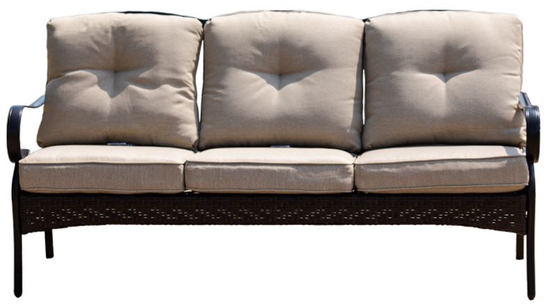 This black steel sofa feature richly woven frames, curved set-back arms, and supportive cushioning for true countryside rest and relaxation. With beige seat cushions come in soft, waterproof polyester and fade-resistant.Read More