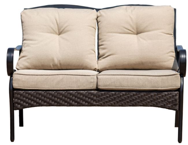 This black steel sofa feature richly woven frames, curved set-back arms, and supportive cushioning for true countryside rest and relaxation. With beige seat cushions come in soft, waterproof polyester and fade-resistant.Read More