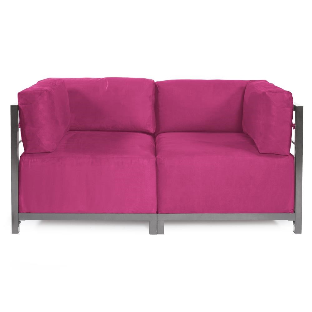 Lounge in style on a Regency Axis Loveseat. Float the Loveseat in your room for an intimate seating arrangement. Expand your loveseat into a larger sectional sofa with additional Chair, Corner or Ottoman Pieces. The steel frame is modular allowing you to arrange the pieces in any configuration. This Loveseat features boxed cushions with hook and loop fasteners to keep the cushions from slipping and looking their best all of the time. Your Regency Axis Sectional will definitely turn heads with its high fashion, velvety chenille texture and vibrant color selection. Change the look of your sectional whenever you want by changing the slipcover. Extra slipcovers sold separately.Read More