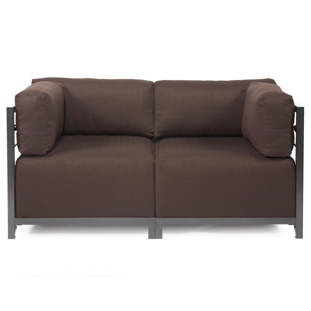 Lounge in style on a Sterling Axis Loveseat. Float the Sterling Axis Loveseat in your room for an intimate seating arrangement. Expand your loveseat into a larger sectional sofa with additional Chair, Corner or Ottoman Pieces. The steel frame is modular allowing you to arrange the pieces in any configuration. This Loveseat features boxed cushions with hook and loop fasteners to keep the cushions from slipping and looking their best all of the time. Your Sterling Axis Sectional will definitely turn heads with its sophisticated linen-like texture and vibrant color selection. Change the look of your sectional whenever you want by changing the slipcover. Extra slipcovers sold separately.Read More