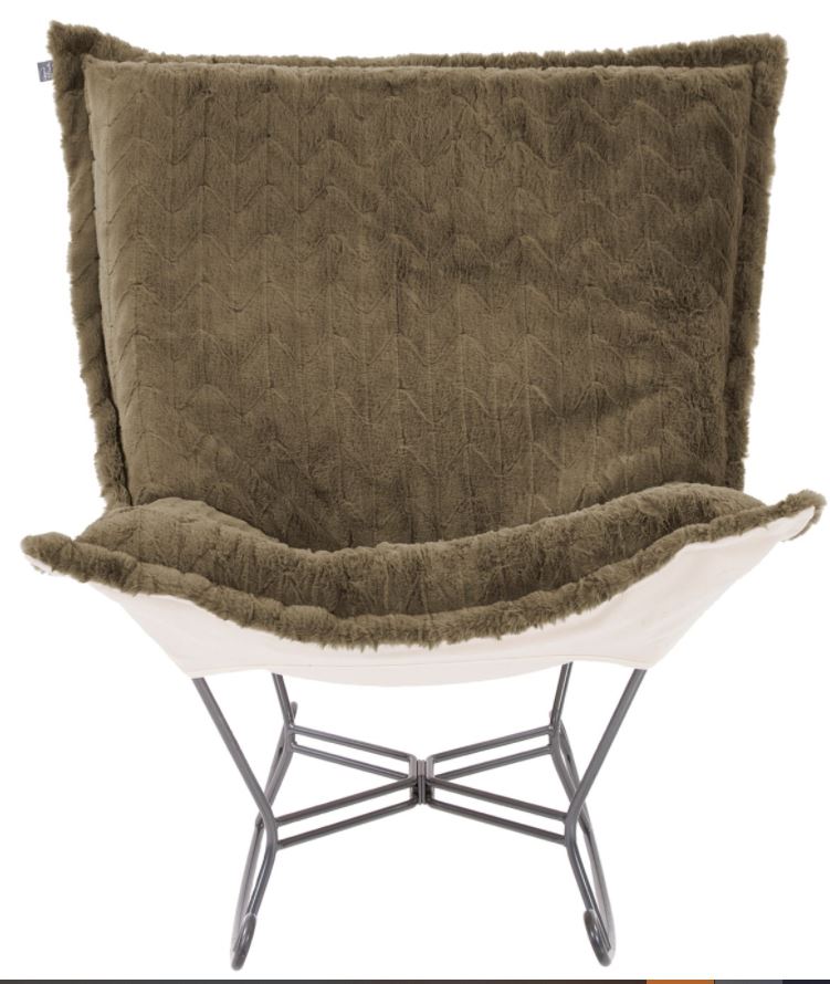 Nothing less than the most comfortable chair on the planet! The soft luxury and style of our Puff Collection is a great addition to any room. All Puff cushions are constructed with luxurious foam for optimal comfort. Like most Howard Elliott items, Puff cushions are removable for easy cleaning, are interchangeable between frames. This rocker is particularly cozy with a high pile faux fur Angora fabric. This item is the complete chair.Read More
