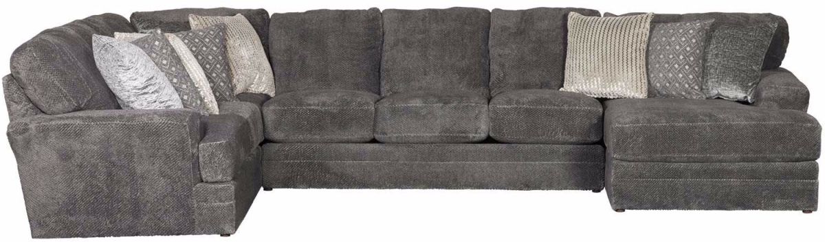 The Mammoth 3-Piece Sectional Sofa Set by Jackson Furniture cradles you as you sink into its oversized cushions and soft, textured polyester fabric. The neutral smoky gray color is sure to complement a variety of designs, as is the selection of nine accent pillows that add pattern and texture to the look.Read More