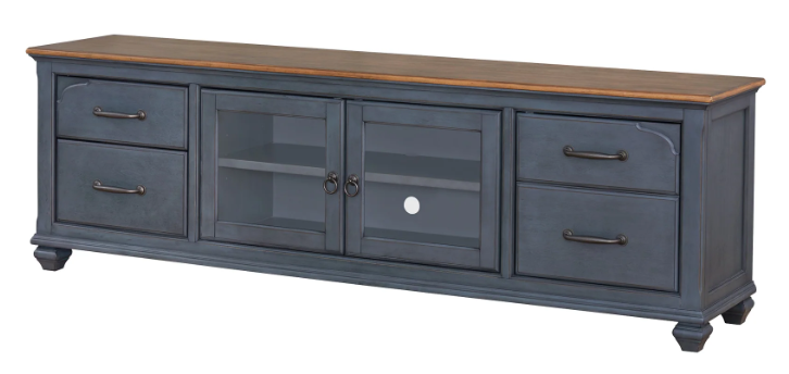 The Americana 84" TV Stand combines classic charm with a coastal flair. Finished in Corduroy Blue with light distressing, it features brushed hardware that enhances its timeless yet updated appeal. Perfect for creating a focal point in your living space, this piece embodies the comfort and nostalgia of Americana style.Read More