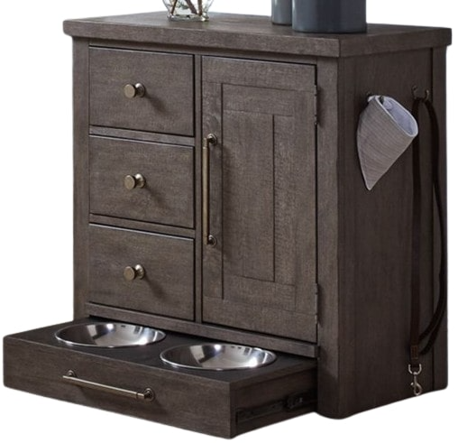 Serve your pet in style with the Modern Farmhouse pet feeder. Crafted with Poplar solids and Knotty White Oak veneers, this piece features a Dusty Charcoal finish with heavy distressing.Read More