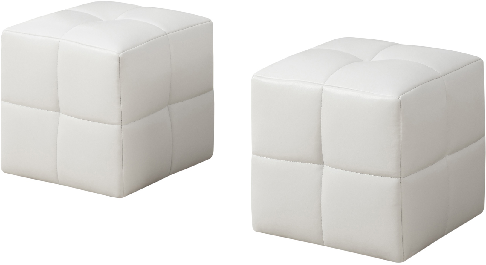 Give your little ones a comfy place to sit and rest their feet with this fun sized 2 piece juvenile ottoman set. Upholstered in a white easy care leather-look material, clean up has never been so simple! A great addition to story time, these ottomans provide extra seating while adding a classic touch to any bedroom or playroom. Comfortably padded and built to last, these ottomans are a must have for any child.