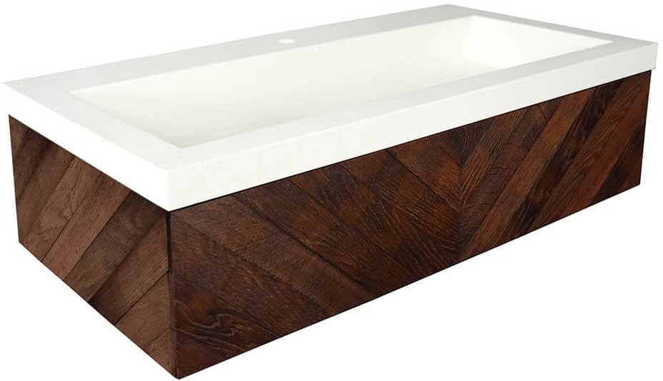 Vanity base is hand-built in the USA from reclaimed wine-making materials