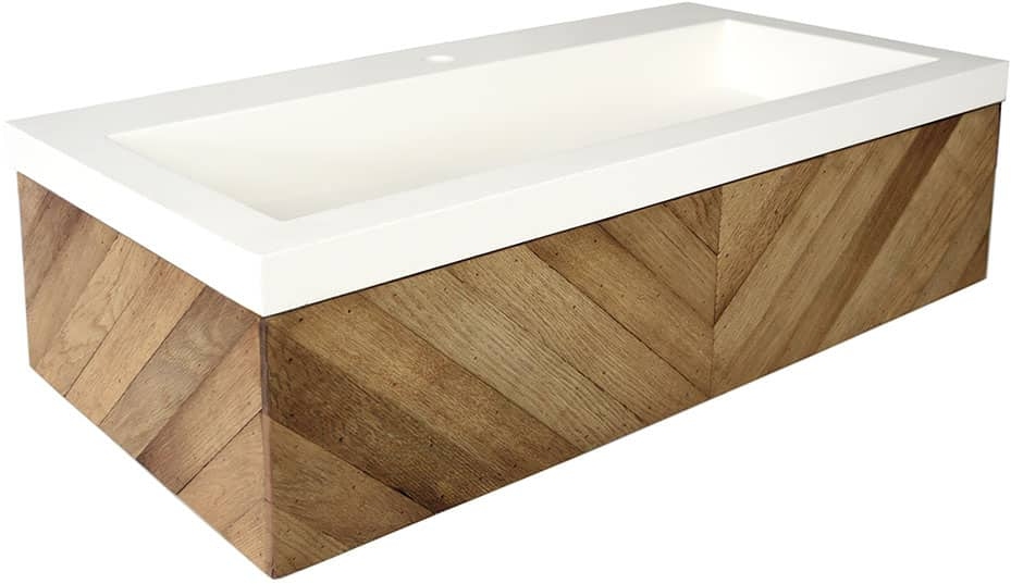 Vanity base is hand-built in the USA from reclaimed wine-making materials