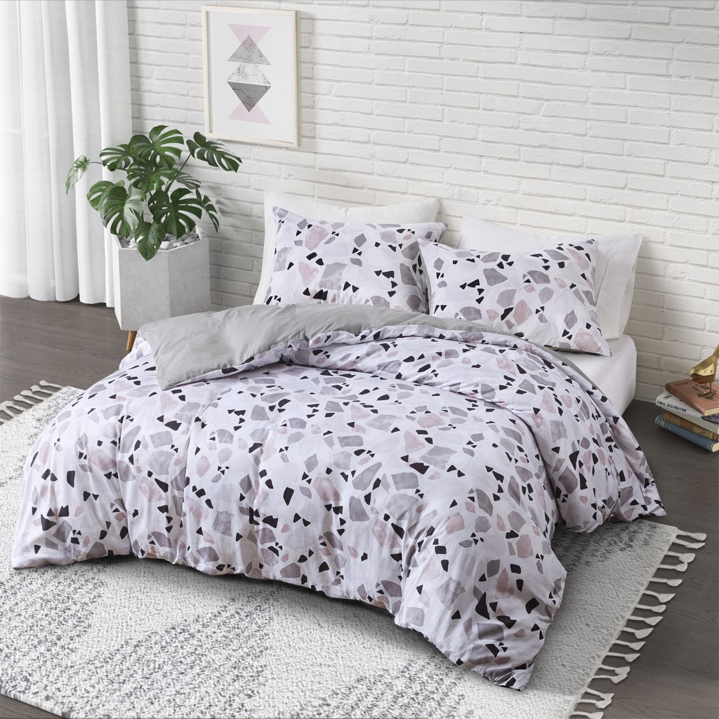 Show your creative side with the CosmoLiving Terrazzo Cotton Printed Comforter Set. This cotton comforter and shams flaunt an abstract brushstroke print, in grey and blush, creating a modern geometric design for a striking look.Read More
