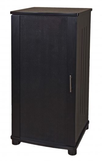 Plateau Audio Stand-Black Oak with adjustable shelves and deluxe metal mesh doorRead More