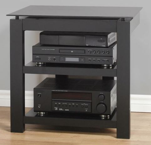 Plateau Video Stand-Black Satin with black glass shelves and polished edgesRead More