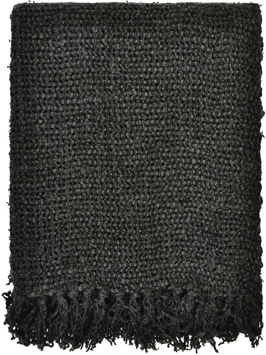 The Lita Black 50" x 67" Throw Blanket features unique colors and design. This woven cotton blanket features fringe edges and a woven pattern.