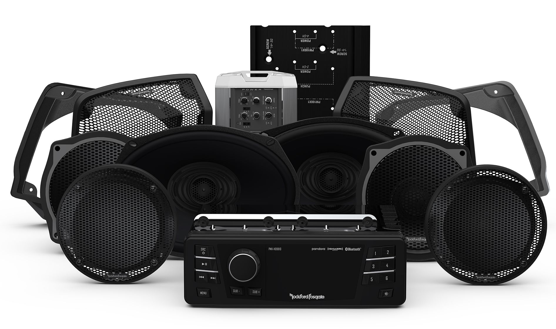 | Included In The Box | (1) PMX-HD9813 Source Unit, (2) TMS6SG Speakers, (2) 2006-2013 Street Glide Grilles, (2) TMS5 Speakers, (2) 1998-2013 TourPak Grilles, (1) TM400X4ad Amplifier, (1) RFKHD9813 Amp Mounting Kit, (2) TMS69 Speakers, (2) 6x9” Speaker Grilles, (2) 6x9" Basket Protectors, (2) 6x9” Mounting Rings, (2) Baglid Cutting Templates, (2) Wiring Harness Kits, (1) Hardware Pack |